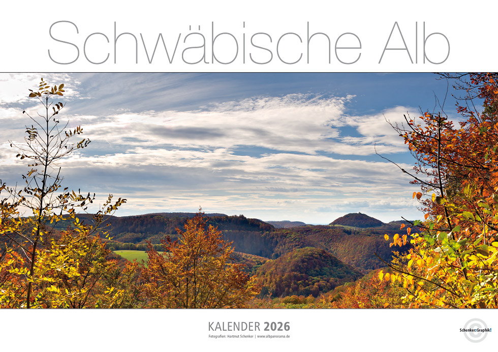 Der Panoramakalender »albpanorama 2026« zeigt Ihnen die Schwäbische Alb im großen Panoramaformat.