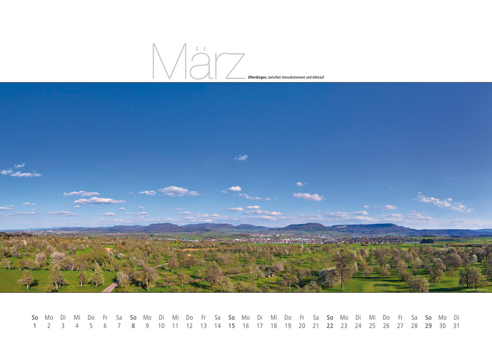 Auf 12 Monatsblättern zeigt er die Schwäbische Alb im Wandel der Jahreszeiten. Die Aufnahmen sind jeweils im entsprechenden