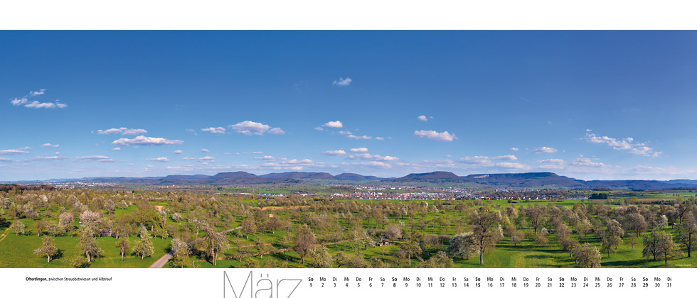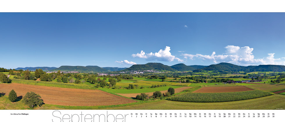 Der Panoramakalender »albpanorama 2026« zeigt Ihnen die Schwäbische Alb im großen Panoramaformat.